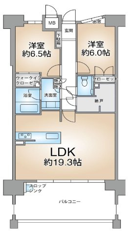 奥行き2.6mのゆとりバルコニー スロップシンク付き
