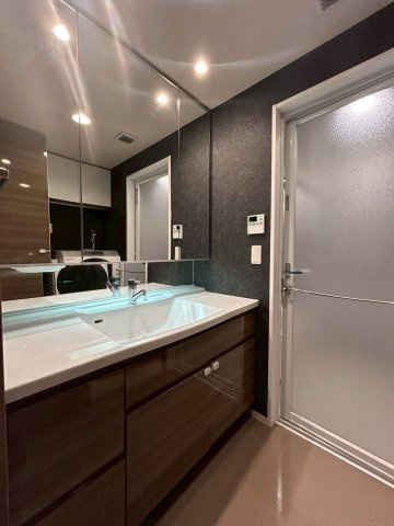 使い勝手のいい広い天板の洗面台 収納も豊富です