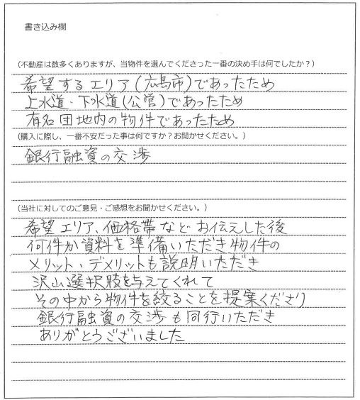 初めてお会いをさせていただいた日から不動産購入まで様々なことがあったように思います。また、お忙しい中お手続きのスケジュール調整にもご協力いただきまして感謝しております。