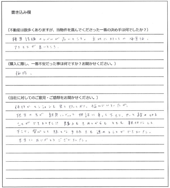 - 不動産は数多くありますが、 当物件を選んでくださった一番の決め手は何でしたか?