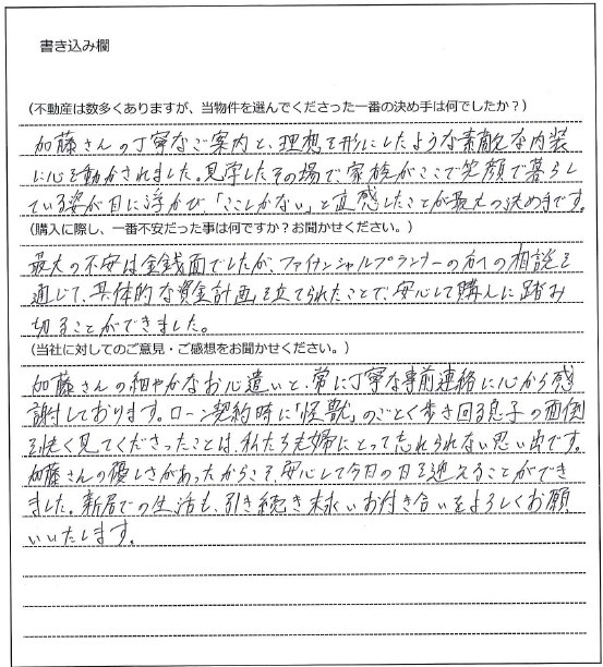 今後はご家族皆様、新居で快適な日々をお過ごしください。